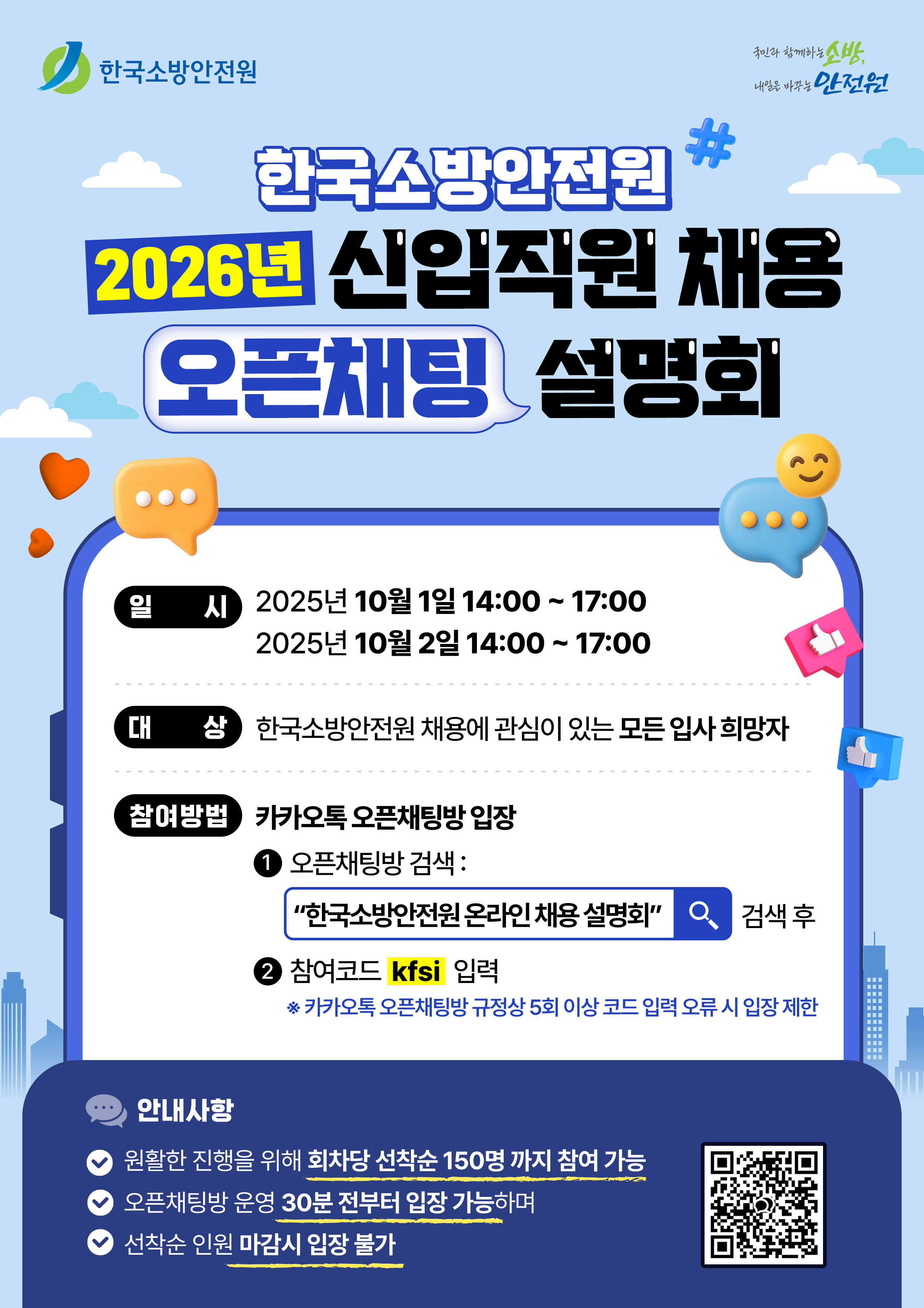 2026년 한국소방안전원 신입직원 채용 오픈채팅 설명회